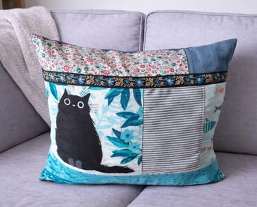 Créations uniques en tissus recyclés aux motifs fantastiques.